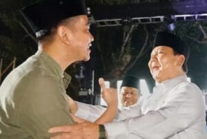 Selanjutnya saat hendak pamit usai memberikan sambutan di Harlah PMII tersebut. Prabowo memanggil Gibran untuk berpamitan seraya merangkul dan menyebut Walikota Solo Gibran Rakabuming Raka sebagai sosok pemimpin hari ini dan masa depan.