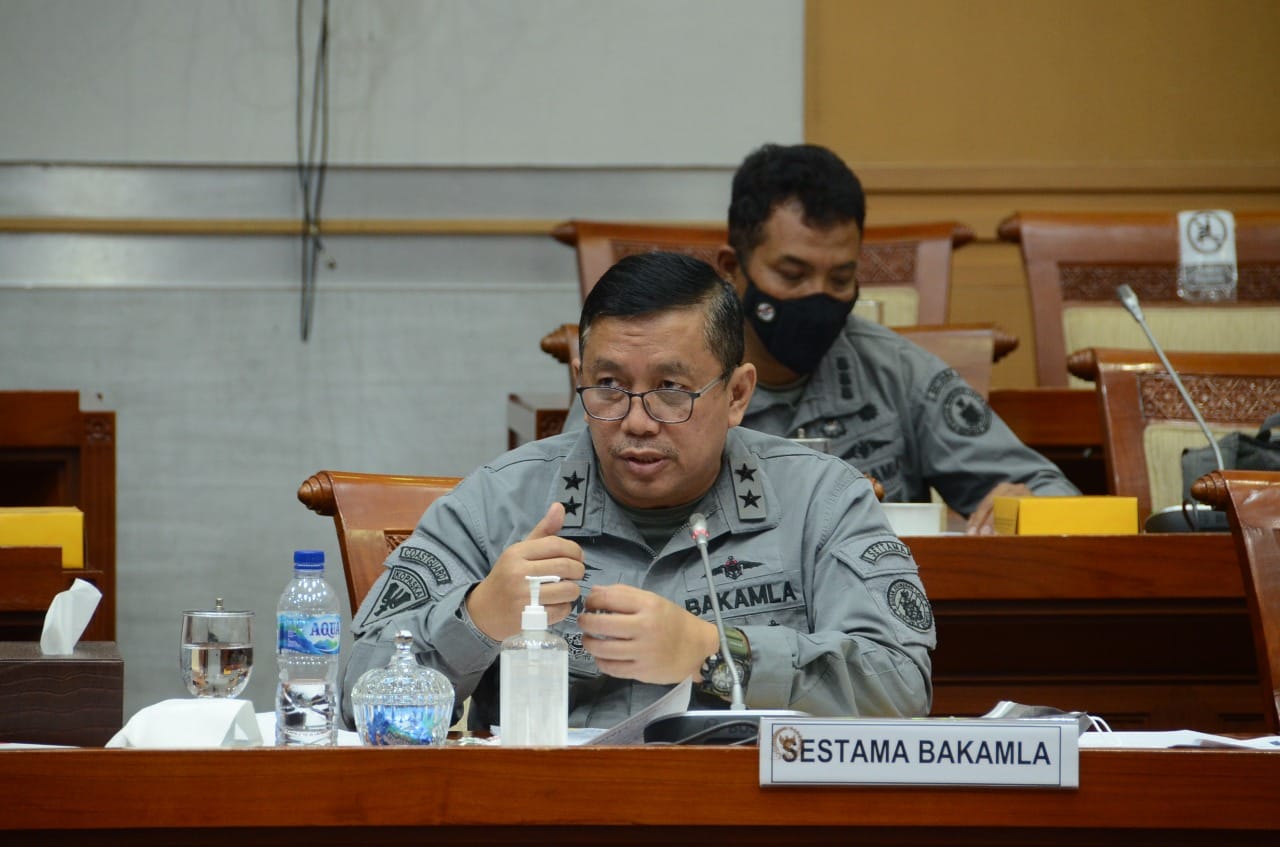 Laksda TNI S. Irawan menyampaikan setidaknya empat poin dalam paparannya tentang roadmap penguatan Bakamla yaitu aspek legislasi, kebijakan dan strategi, sarana dan prasarana serta kebutuhan anggaran Bakamla kepada Komisi I DPR RI.