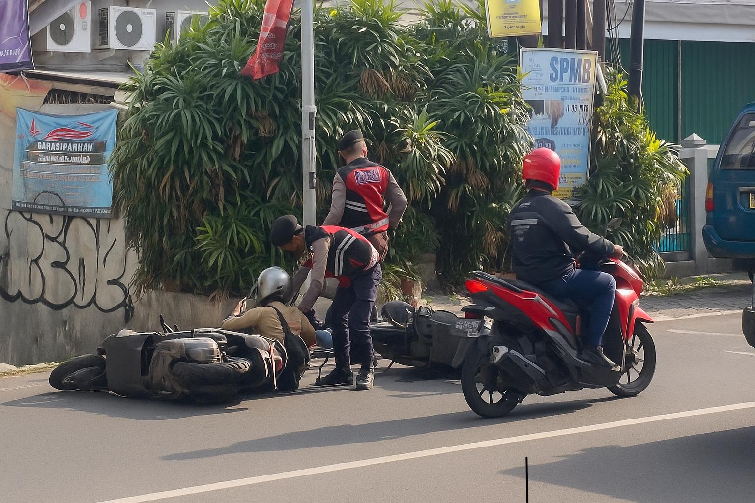 IPNews. Depok. Anggota Detasemen Turangga Subditcakkal Ditpolsatwa Korsabhara Baharkam Polri menunjukkan kesigapan dan tindakan cepat dalam membantu penanganan kecelakaan lalu lintas (laka lantas) yang terjadi di Jalan Komjen Pol M. Jasin, Depok, pada hari Jumat pagi, (31/10/2025).
