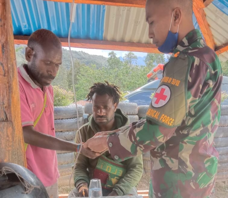 Kesiapan Tim Kesehatan Satgas Kodim Yalimo Yonif RK 751/VJS yang selalu siaga dalam menangani dan melayani kesehatan warga mendapatkan apresiasi dari para warga yang ada di wilayah penugasan. Hal ini disampaikan oleh Nando Yelipele (27) yang datang mengantarkan Yapanius Elokpere, karena menderita Sakit Malaria PV (rdt), Sabtu (8/1/2022).