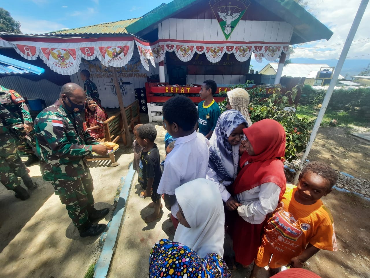 Dihari jadinya yang ke-76, seluruh prajurit TNI meluapkan kebahagiaan dengan cara yang berbeda-beda, tidak terkecuali Satgas Pamrahwan Yonif RK 751/VJS yang merayakan HUT TNI dengan mengumpulkan warga untuk panjatkan doa syukur atas bertambahnya usia TNI serta makan bersama.