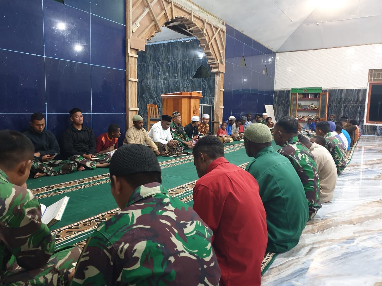 IPNews. Jayawijaya. Anggota Satgas Pamrahwan Yonif RK 751/VJS menghadiri undangan dari Tokoh Masyarakat Walesi pada acara pembacaan doa dan tahlil memperingati 40 hari wafatnya Kepala Suku Walesi Almarhum Bapak Tahuluk Asso, bertempat di Masjid Al-Aqso, Distrik Walesi, Kabupaten Jayawijaya, Papua.
