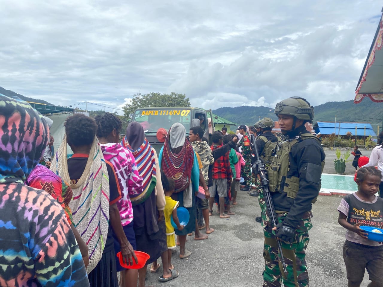 IPNews. Puncak Jaya. Kerja sama antara Satgas Pamtas RI-PNG Kewilayahan Yonif 112/DJ dan Kodim 1714 Puncak Jaya masih terus berlangsung dalam upaya menangani para pengungsi akibat konflik antara dua kelompok pendukung Pasangan Calon (Paslon) Bupati yang bersaing dalam Pilkada. Ketegangan terjadi antara pendukung Paslon Nomor Urut 1, Dr. Yuni Wanda, S.Sos., S.IP., M.M., dan Mus Kagoya, S.E., dengan pendukung Paslon Nomor Urut 2, Miren Kagoya, S.I.Kom., dan Mendi Wonorengga, Sabtu (08/02/2025)