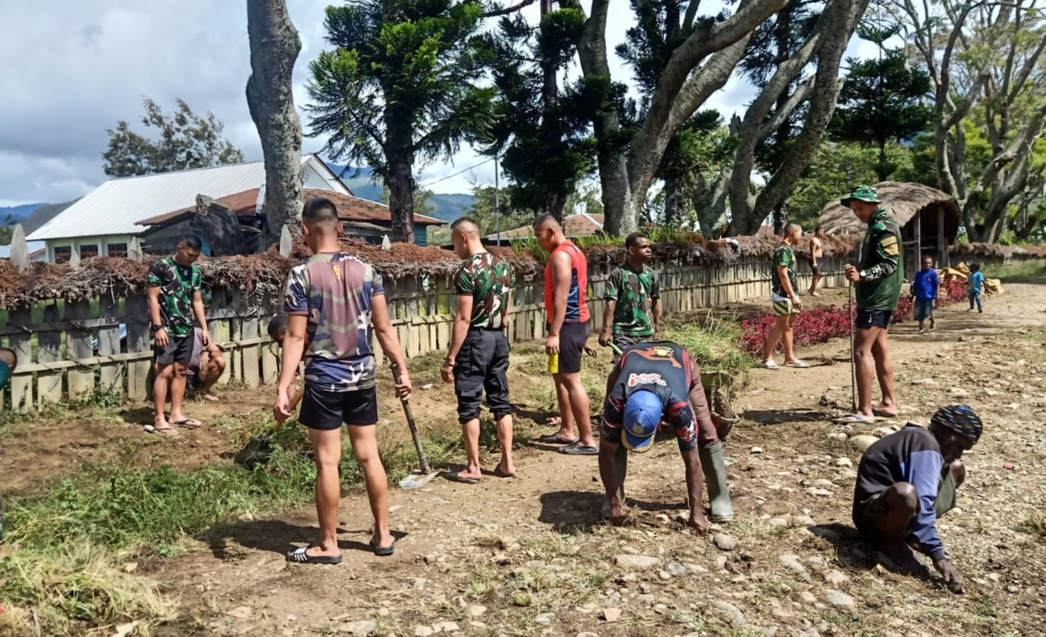 Hal inilah yang dilakukan oleh Satgas Pamtas Yonif Raider 142/KJ melalui Pos Bolakme melakukan kegiatan pembersihan fasilitas umum yaitu jalan bersama warga dihadiri Bapak Yosia Komba selaku Mantan Kepala Kampung sekaligus tokoh mayarakat yang disegani, bertempat di kampung Bolakme, Distrik Bolakme, Kabupaten Jayawijaya, Papua, Rabu (13/07/22).