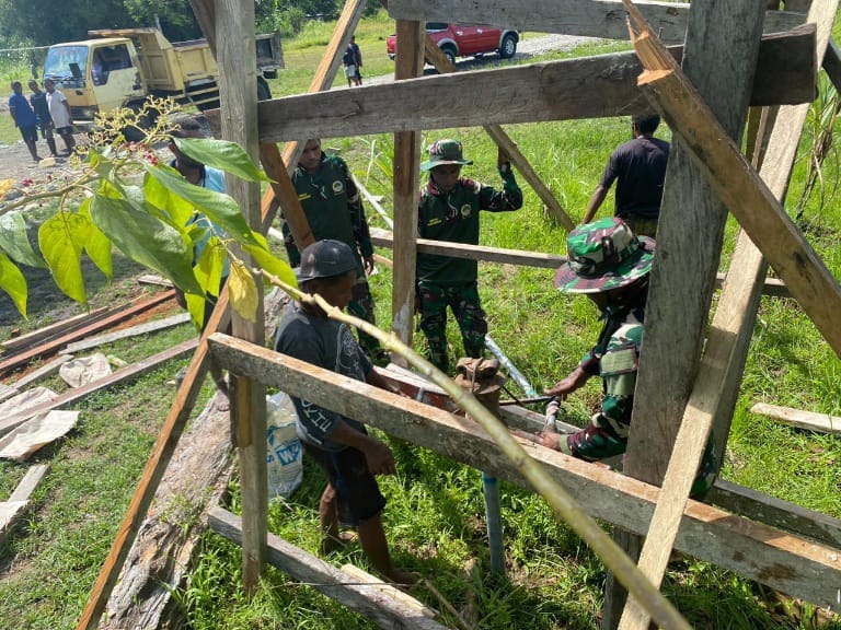 IPNews. Yahukimo. Satgas TMMD ke-119 Kodim 1715/Yahukimo terus bergerak aktif dalam membantu pembangunan infrastruktur di wilayah pedalaman Papua, salah satu kegiatan yang tengah dilakukan adalah pembangunan sumur bor bagi masyarakat Kampung Kali Biru Dekai, Papua, Minggu (17/03/2024).