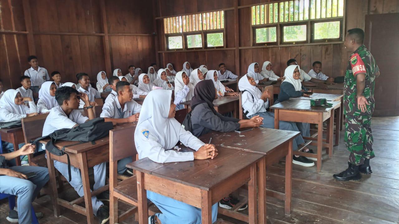 IPNews. Raja Ampat. Memperkuat rasa nasionalisme sejak dini, Satgas TNI Manunggal Membangun Desa (TMMD) Ke-122 Kodim Raja Ampat melaksanakan program Wawasan Kebangsaan (Wasbang) di SMK Negeri 2 Raja Ampat, Distrik Wigeo Selatan, Kab. Raja Ampat.