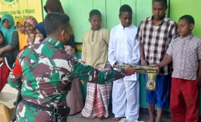 IPNews. Papua. Kepedulian serta berbagi kasih dan rezeki kepada masyarakat di wilayah penugasan. Satgas Pahrawan Yonif RK 751/VJS melaksanakan bakti sosial (baksos) di Pondok Pesantren Al-Istiqomah, Distrik Walesi,Kabupaten Jayawijaya,Papua,Sabtu (28/08/2021).