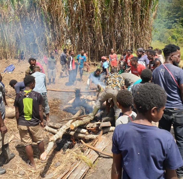 IPNews.Jayawijaya. Masyarakat Walesi turut mengundang Personel Satgas Pamrahwan Yonif RK 751/VJS Minggu (11/7/2021),pada acara, Bakar Batu dalam rangka penutupan acara adat atas meninggalnya Bapak Tahuluk Asso Kepala Suku Distrik Walesi (Ayah dari H. Abu Hanifa Asso) pada 2 Juli 2021 lalu,