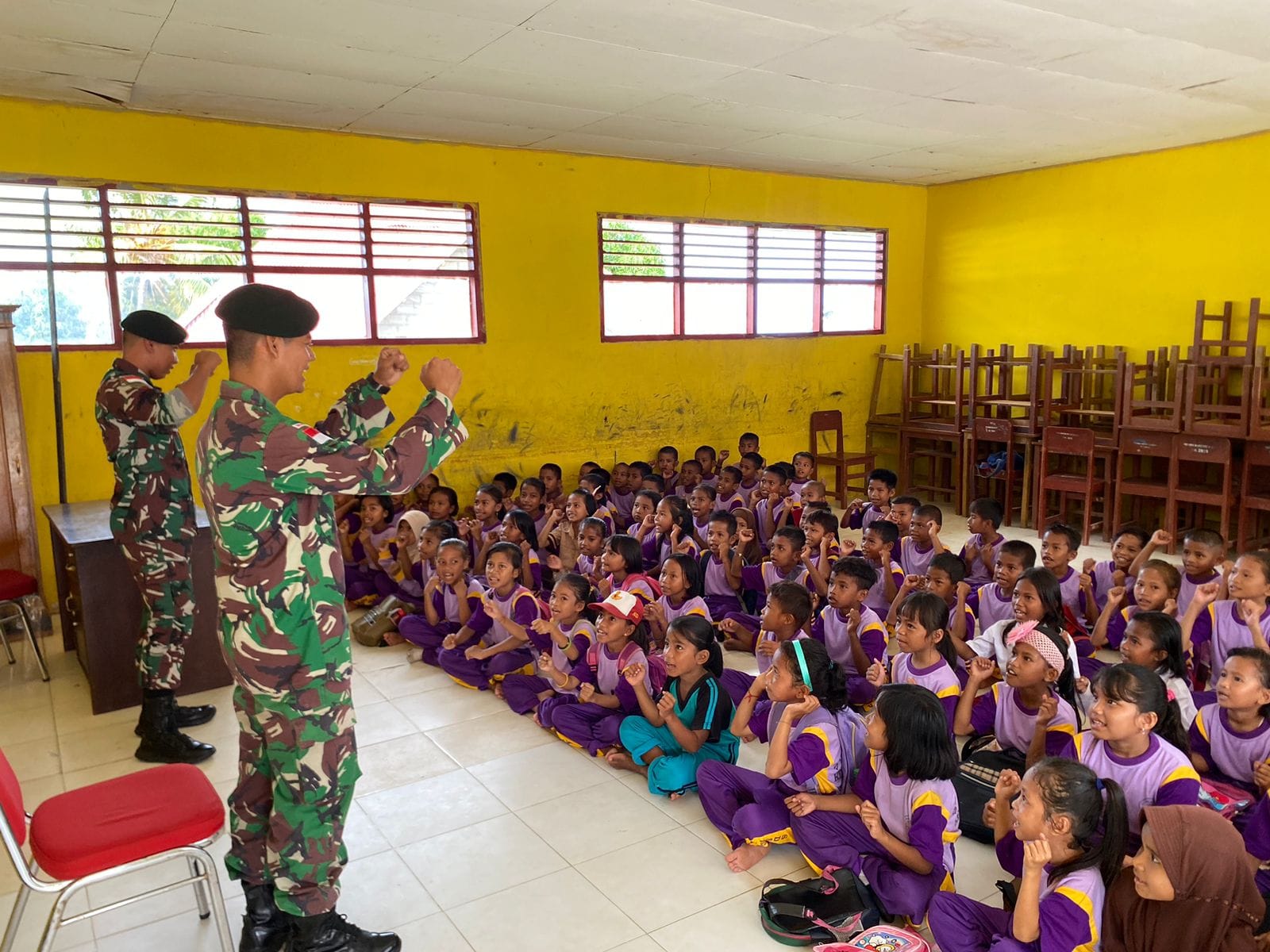 IPNews. Ambon. Pos Air Buaya yang tergabung dalam Satgas Pamrahwan Maluku Yonarmed 1 Kostrad melaksanakan kegiatan perbantuan sebagai Tenaga Pendidik di SD 05 Kepalamadan, Desa Nanali Kecamatan Kepalamadan Kabupaten Buru Selatan, Maluku, Senin (20/02/2023).