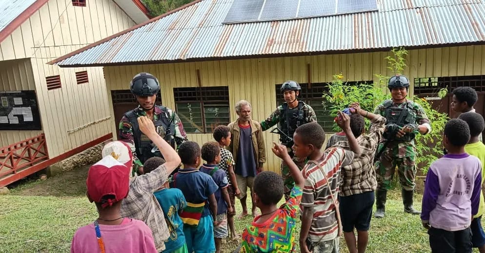 IPNews. Lanny Jaya. Personel Satgas Yonif Mekanis 203/AK Pos Pirime turut serta berpartisipasi dalam perkembangan dunia pendidikan dengan membantu memberikan pelajaran dasar di halaman sekolah SDN Yalipak, Distrik Pirime, Kabuputen Lanny Jaya, Rabu (15/02/2023).
