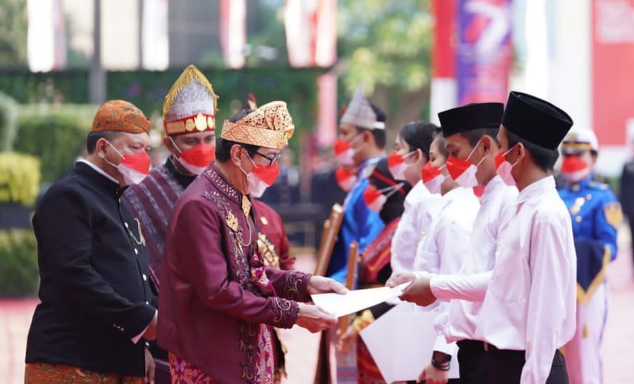 IPNews. Jakarta. HUT Kemerdekaan RI ke -77. Menkumham Yasonna H. Laoly serahkan langsung remisi Kemerdekaan kepada 168. 196 Narapidana secara simbolik, di halaman Kantor Kemenkumham, Kuningan, Jakarta, Rabu (17/8/22).