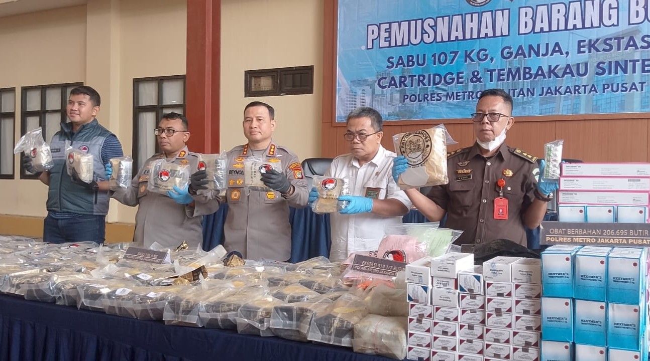 Sebagian barang bukti disisihkan untuk kepentingan persidangan, sementara sisanya dimusnahkan. Adapun rincian barang bukti yang dimusnahkan meliputi sabu 109.434,98 gram, ekstasi 901½ butir, cartridge 910 pcs, obat berbahaya 206.695 butir, ganja 24,27 gram, tembakau sintetis 28,4 gram, serta colo/hasis 1,98 gram.