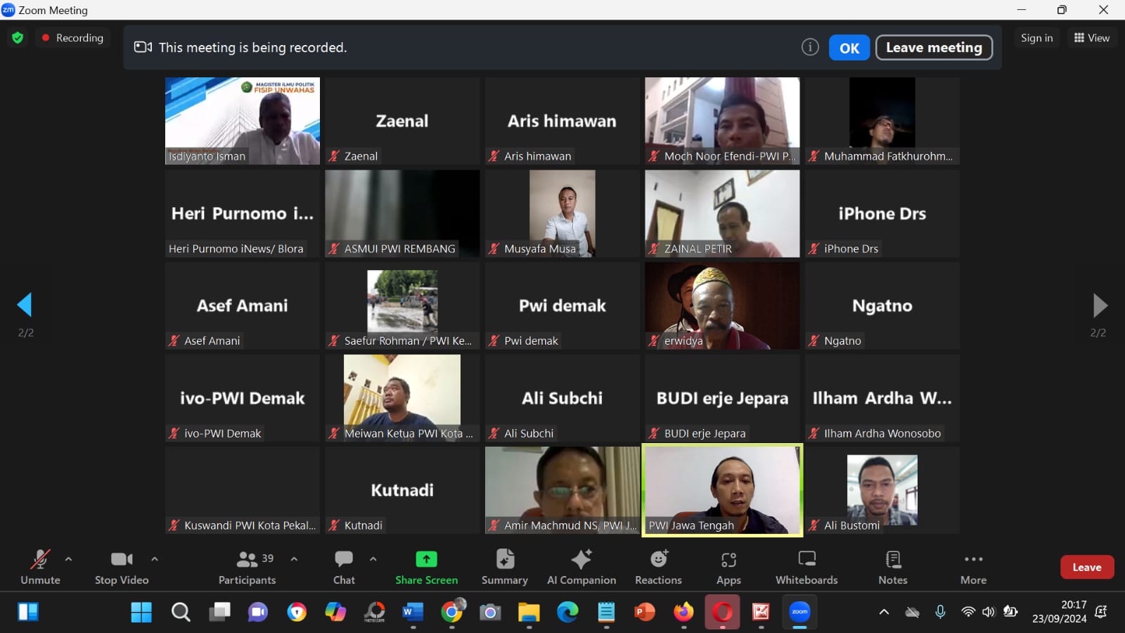 Penegasan itu tergambar dalam.rapat pleno diperluas secara online melalui Zoom Cloud Meetings pada Senin (23/9) malam yang digelar PWI Provinsi Jawa Tengah.