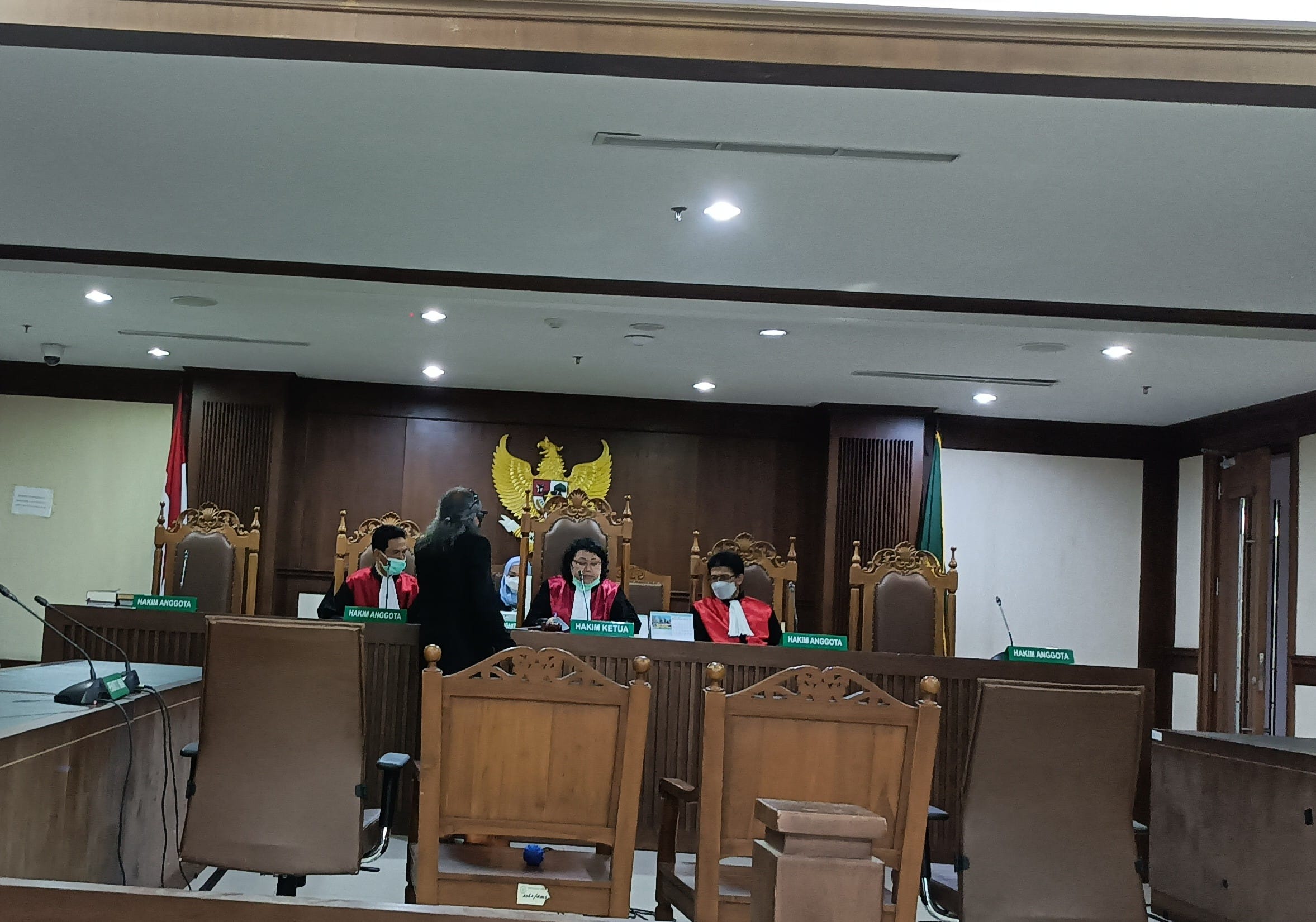 “Masalah identitas KTP Kuasa hukum penggugat,karena ada keberatan dari pihak lawan kata Majelis Hakim Barnadette.