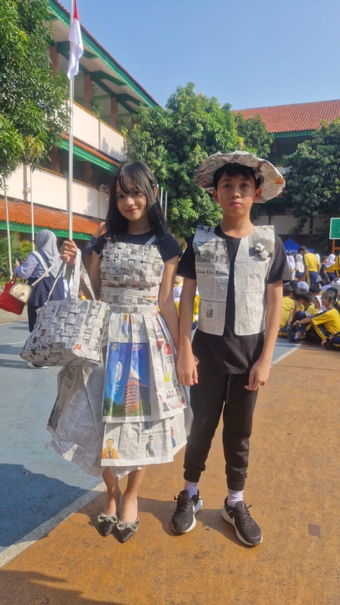 Selain itu, puncak kegiatan kokurikuler juga menampilkan karya dari bahan daur ulang. Kelas VIII G yang diasuh oleh Ibu Buntari Safitri, S.Pd menampilkan kreasi baju dari bahan bekas yang ramah lingkungan yang diwakili oleh Riziq Aqeela Calief Saputra.