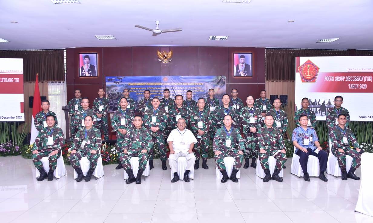 FGD Litbang TNI Tahun 2020 dengan tema “Sinkronisasi Perencanaan Life Cycle Cost Alutsista TNI Dengan Program Pembangunan Dan Pembinaan Kekuatan TNI Dalam Mendukung Tugas Pokok TNI”, diikuti oleh 40 peserta dari Kemhan RI, Mabes TNI, TNI AD, TNI AL dan TNI AU,