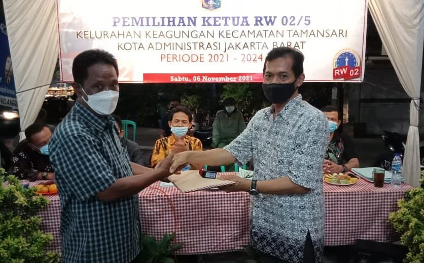 IPNews Jakarta. Antusias Warga RW 02/5 Kelurahan, Keagungan, Tamansari,Jakarta Barat, Sabtu, (06/11/21), menginginkan kembali Rukman memimpin wilayahnya, untuk periode tahun 2021 hingga 2024.Hal itu terlihat dalam pemilihan ketua RW 02/5 Rukman terpilih secara aklamasi.