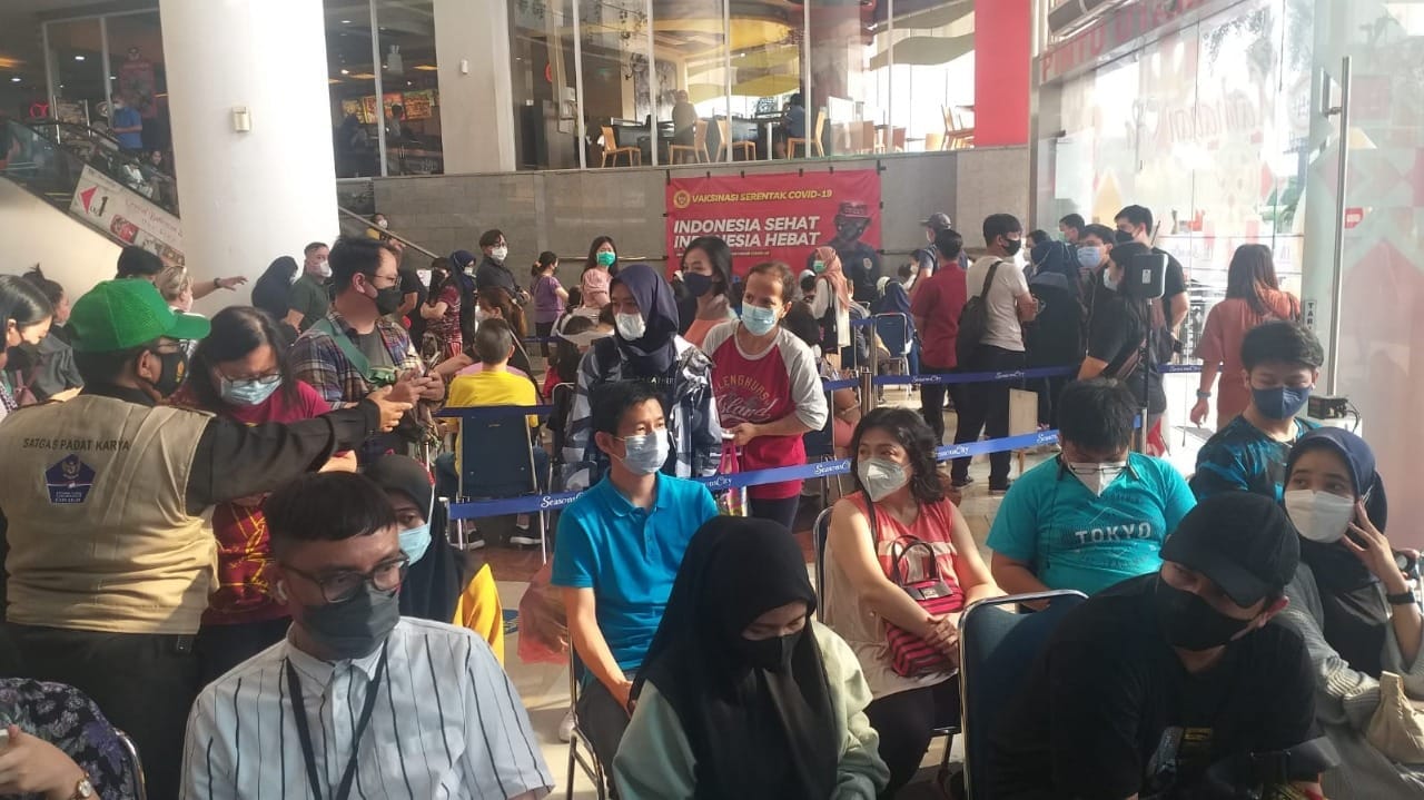 Membludaknya masyarakat yang mulai meningkat tinggi untuk mengikuti vaksinasi yang diselenggarakan oleh Binda dan Dinkes DKI Jakarta.