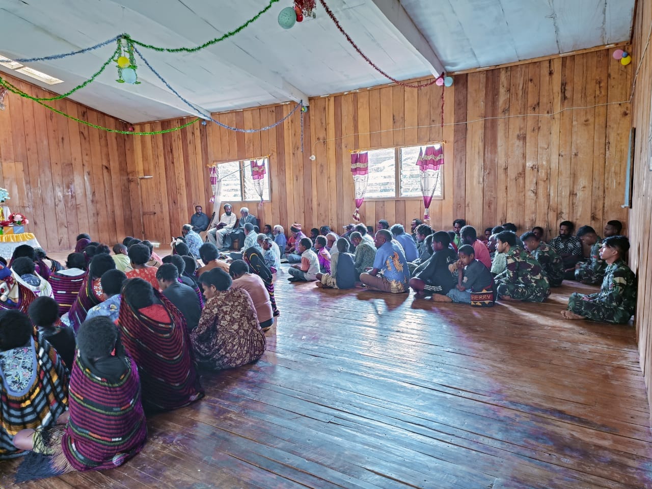 Pelaksanaan kegiatan ini di pimpin oleh Letda Ckm Kadek Adi beserta personel Pos Balingga yang beragama Nasrani. Setelah melaksanakan ibadah bersama, personel Pos Balingga pun mengadakan makan bersama dengan para Jemaat Gereja Mowi yang telah disiapkan oleh personel Pos Balingga Satgas Yonif Mekanis 203/AK.