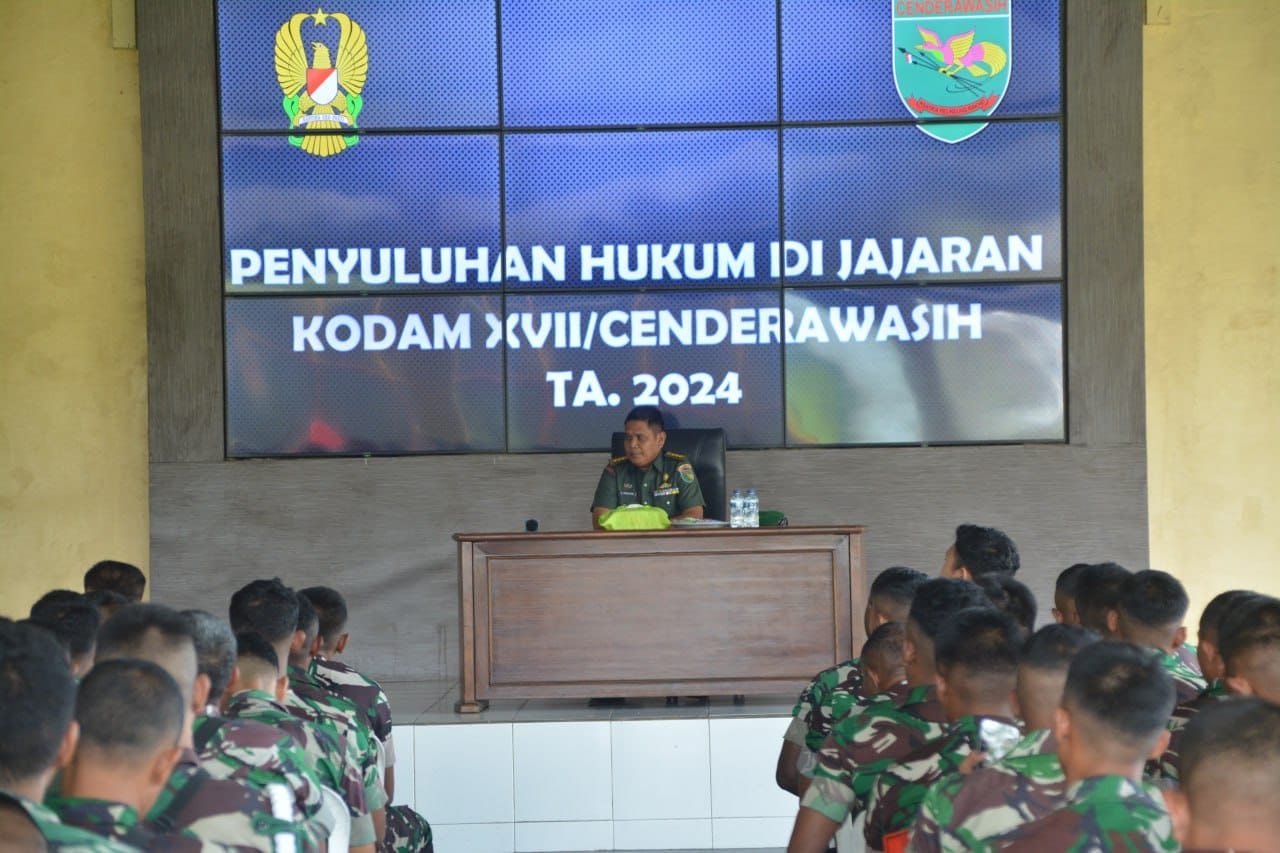 Pada kesempatan yang sama, Kakumdam XVII/Cenderawasih Kolonel Chk Achmad Sholihien menyampaikan, penyuluhan hukum yang dilaksanakan sebagai upaya untuk meningkatkan kesadaran hukum bagi Prajurit, PNS dan keluarganya di satuan jajaran Kodam XVII/Cenderawasih dengan tema “Optimalisasi Peran Hukum Bagi Prajurit, PNS TNI AD Beserta Keluarganya Guna Mendukung Tugas Pokok TNI AD”.