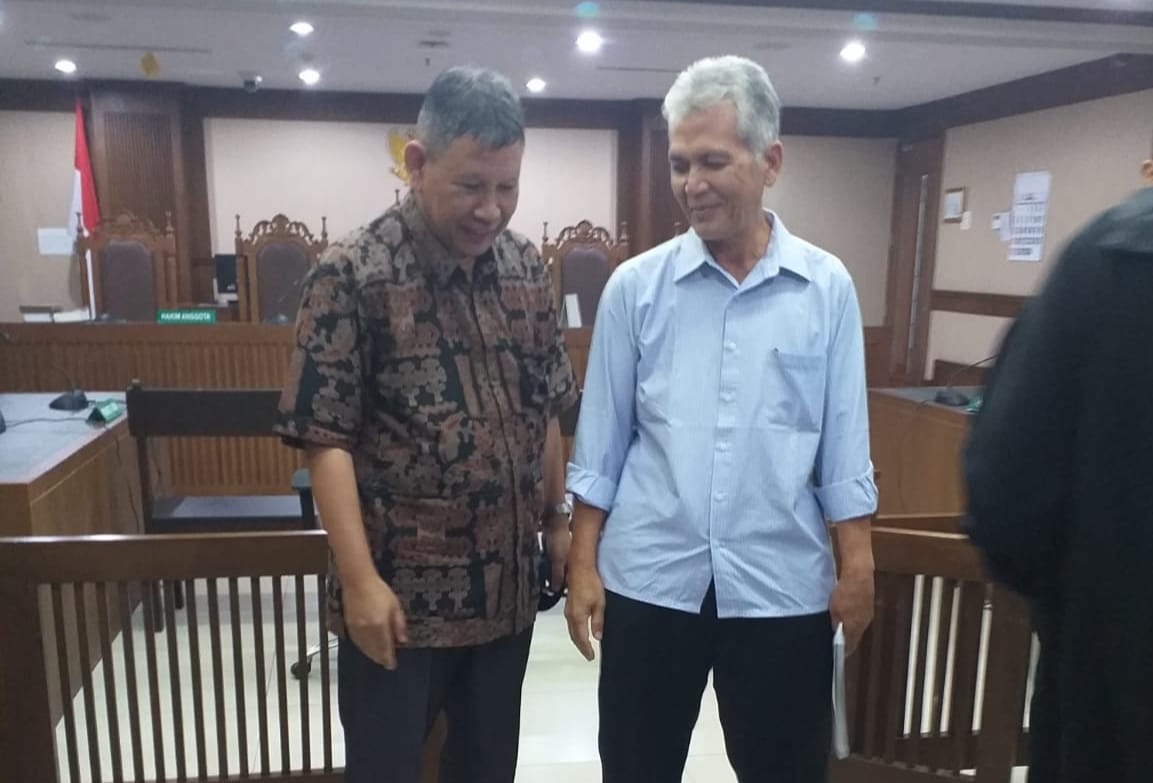 M Khayam (kiri/batik) saat di persidangan Tipikor pada PN Jakpus