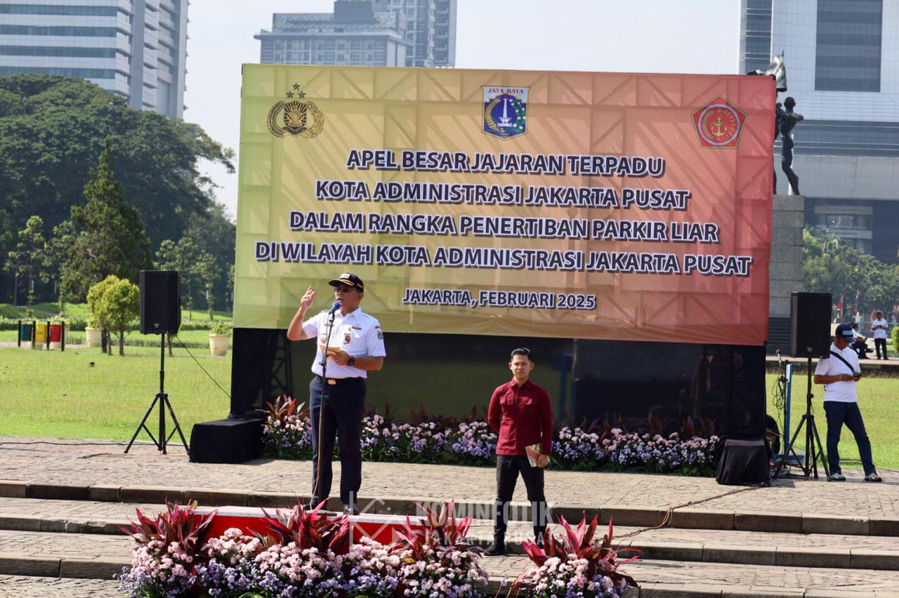 IPNews. Jakarta. Pemerintah Kota Administrasi Jakarta Pusat (Pemkot Jakpus) menggelar apel Bulan Tertib Parkir di kawasan Silang Monas, Gambir. Rencananya, mulai hari ini hingga 12 Maret akan dilakukan penertiban parkir liar oleh petugas gabungan secara masif di delapan kecamatan se-Jakarta Pusat.