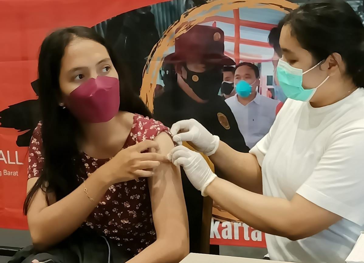 IPNews. Jakarta. Warga mengapresiasi Pelayanan vaksin di sentra Vaksinasi Serentak, kolaborasi Badan Intelijen Daerah (BINDA) dan Dinas Kesehatan (DINKES) Provinsi DKI Jakarta.