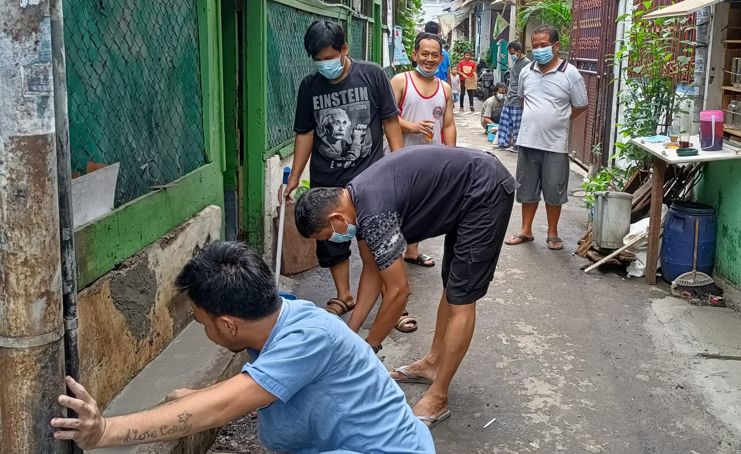 Ia menjelaskan, meskipun sedang kerja bakti, warganya tetap menjaga protokol kesehatan dengan 3M.