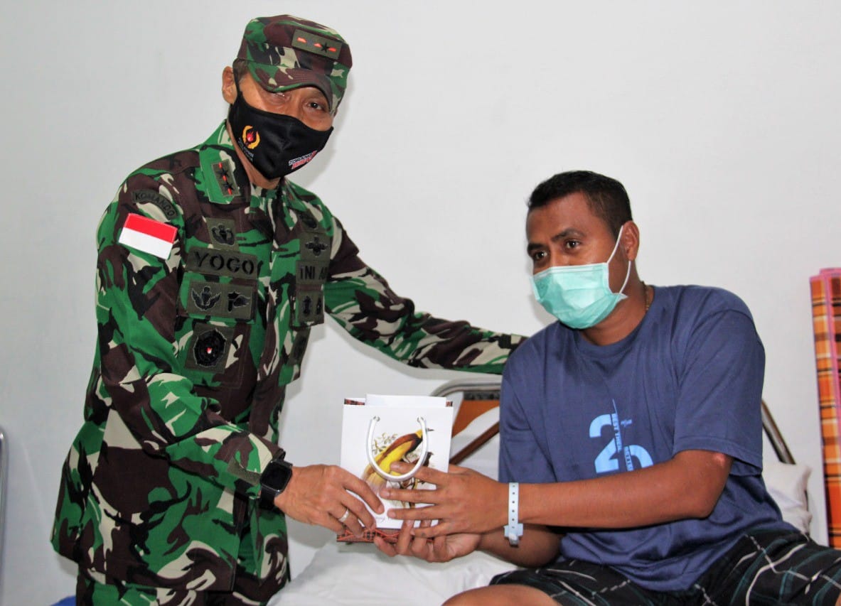 Di sela-sela kegiatan tersebut, Pangdam XVII/Cenderawasih menyampaikan bahwa kunjungan ini bertujuan untuk memberikan semangat kepada prajurit dan para tenaga kesehatan agar mereka lekas sehat kembali.