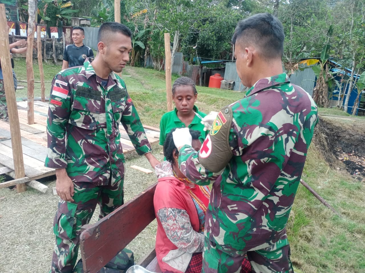 “Sehingga Danpos langsung memerintahkan tenaga Kesehatan Pos yaitu Pelda Syuryadi untuk segera memberikan penanganan cepat terkait luka di Kepala Mama Dince,” ungkap Lettu Inf Sahita